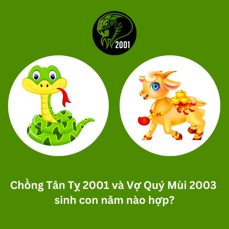 Chồng Tân Tỵ 2001 vợ Quý Mùi 2003 sinh con năm nào tốt nhất